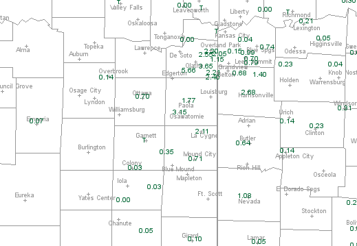 CYGNE 1.81 CO-OP OBSERVER LA CYGNE 1.64 DCP GAUGE MOUND CITY 2.91 CO-OP