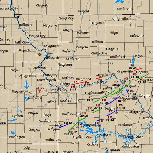 south of Sedalia. The other tornadoes from the second round include